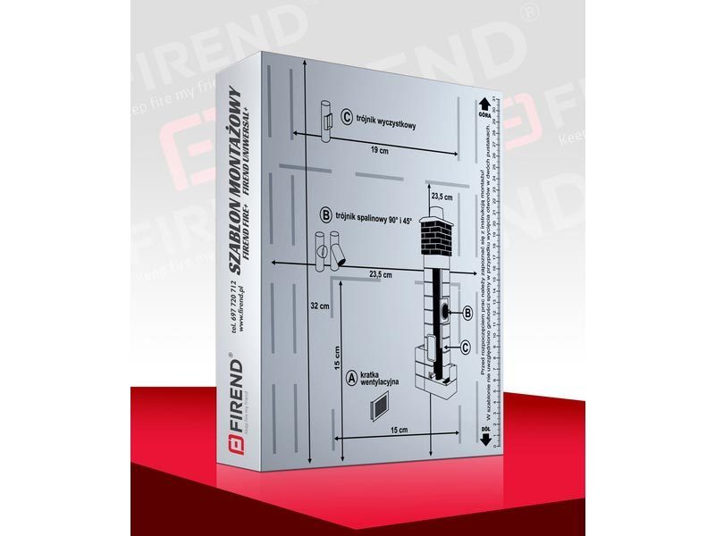 - Szablon montażowy- służący do trasowania wycięć w obudowie komina.